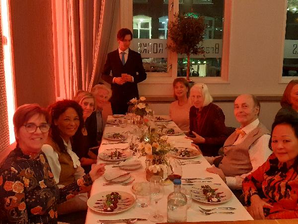 Vijftien Vriendenkringers genoten op 10 december jl van een heerlijk 4 of 5 gangen diner bestaande uit: biet carpaccio, knolselderijsoep met garnalen, eendenborst met pastinaak en spruitjes (voor de vegetariërs een quiche met paddenstoelen) en tot slot bread en butterpudding met ijs en stoofpeer. En als extra gang een kaasplankje met Hollandse kazen.